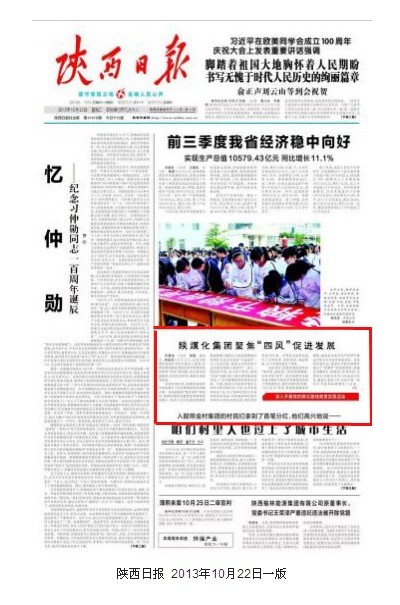 陕西日报:陕煤化集团聚焦“四风”促进发展